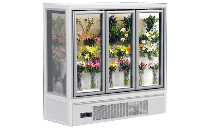 鮮花保鮮柜是屬于商用冷藏柜的范疇,溫度一般不需要太低,5到8度即可。冷柜吹風口不能對著鮮花吹,同時冷柜要保持一定的溫度和濕度,建議買風冷柜,這樣冷柜壁不會有水,不會將花材凍傷,也不用加水。